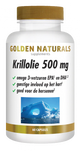 Vette vis is een rijke bron van omega 3-vetzuren EPA en DHA. Golden Naturals Krillolie 500 mg is een olie gewonnen uit kleine garnaalachtige zeediertjes die krill worden genoemd. Deze krill wordt duurzaam gevangen in Antarctica. Krill is rijk aan de omega 3-vetzuren die gebonden zijn door fosfolipiden. Daardoor zijn ze in water oplosbaar en goed opneembaar in het lichaam. DHA en EPA hebben een gunstige invloed op het hart en DHA is daarnaast goed voor het gezichtsvermogen en de hersenen. Deze 100% pure krillolie geeft geen oprispingen of vissmaak.