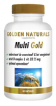 Golden Naturals Multi Gold bevat alle belangrijke vitaminen en mineralen in de biologisch actieve, dus goed opneembare vorm. Deze multi is speciaal voor mannen en vrouwen van 18 t/m 60 jaar. Bij de samenstelling is zoveel mogelijk gekozen voor optimaal opneembare stoffen en verbindingsvormen. Vitamine B6, B11 (folaat), vitamine B12, vitamine C en vitamine D3 zorgen voor het behoud van een goede weerstand. Vitamine B2, B6, B11, B12 en vitamine C ondersteunen bij vermoeidheid. Vitamine B1, B2, B6 en B12 en vitamine C zijn goed voor het zenuwstelsel. Vitamine B1, B6, B11, B12 en vitamine C ondersteunen de mentale functies en de gemoedstoestand. Denk aan geheugen en concentratievermogen of bij gevoelens van stress en spanning. Aan deze multi zijn verder enkele andere nutriënten toegevoegd, zoals zeaxanthine, luteïne en co-enzym Q10.